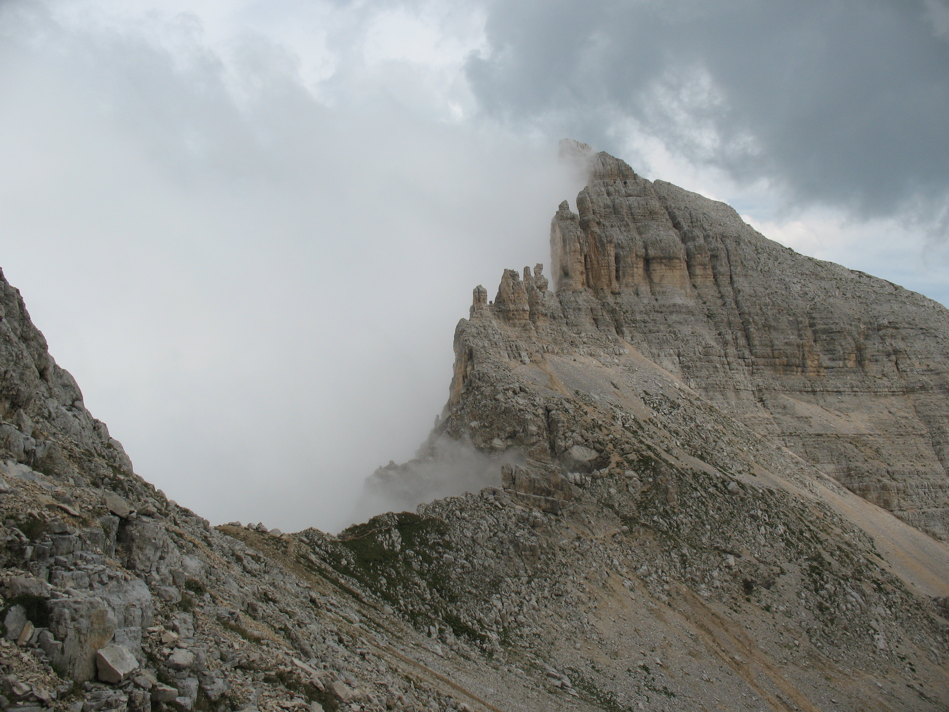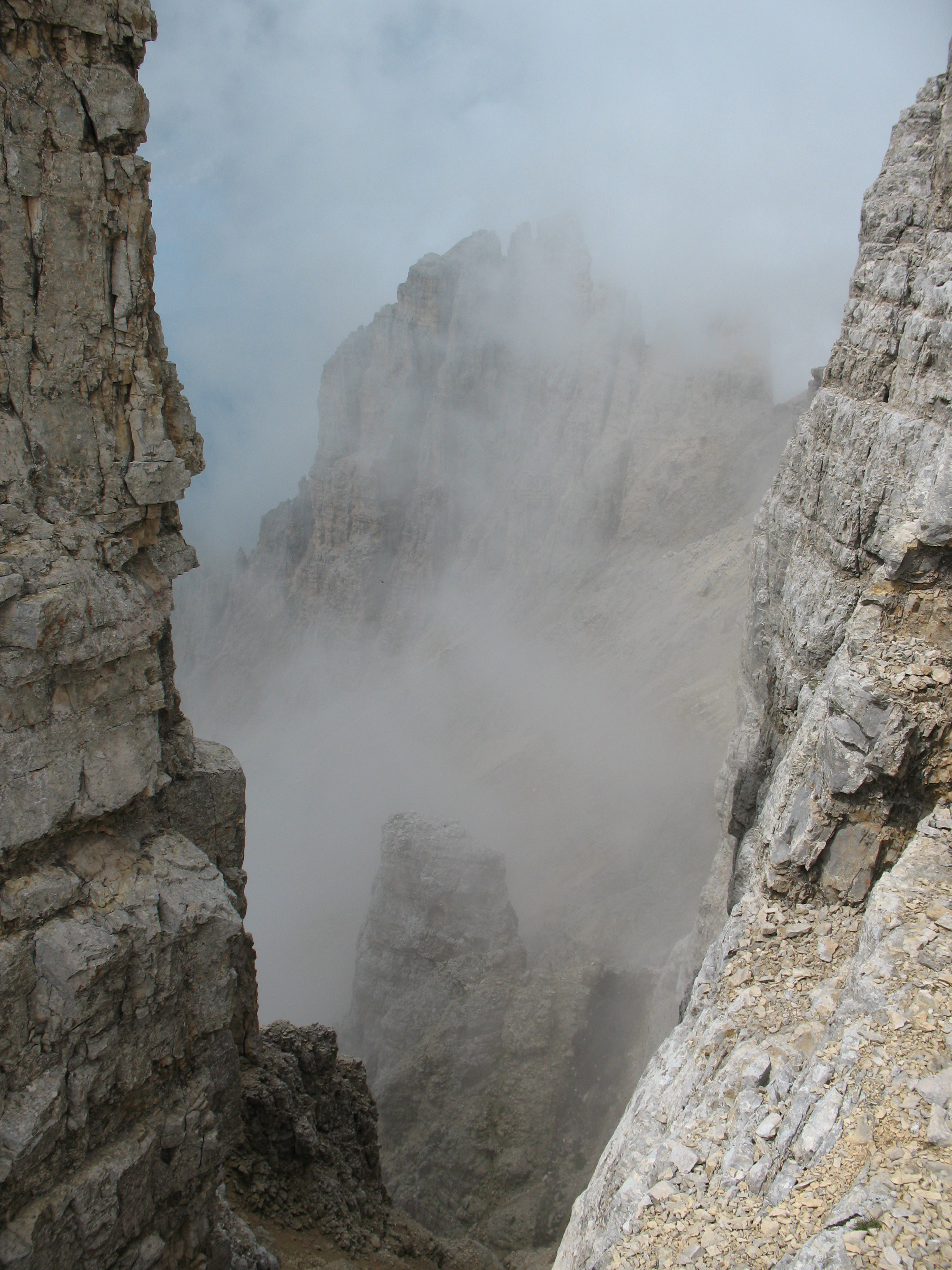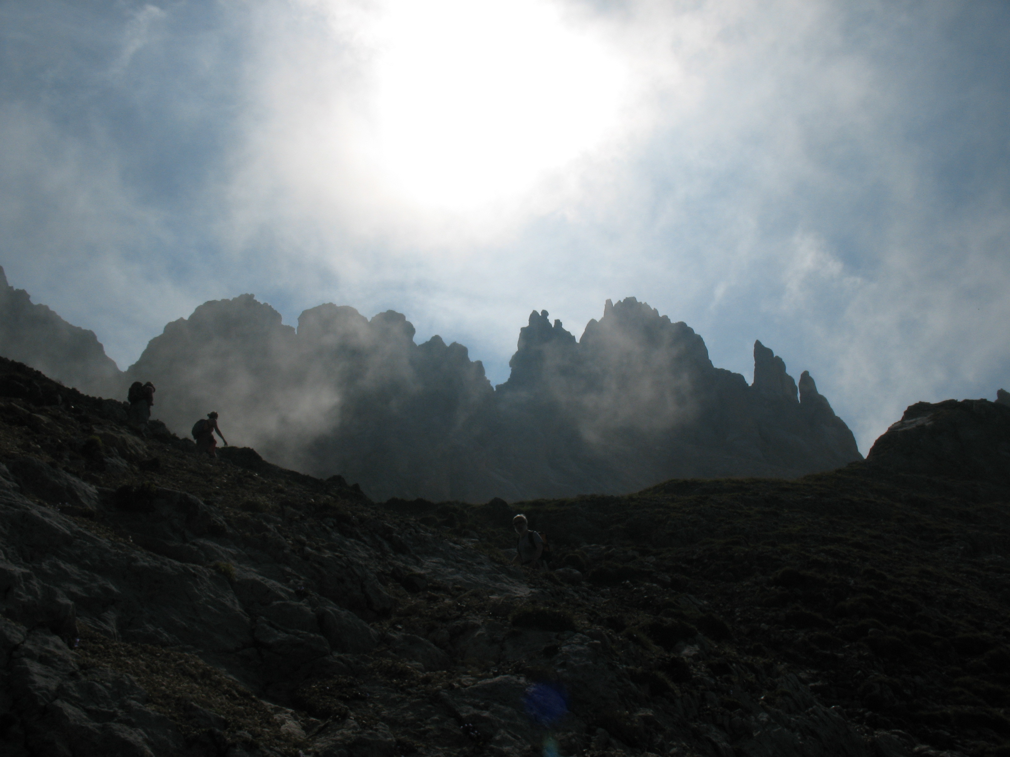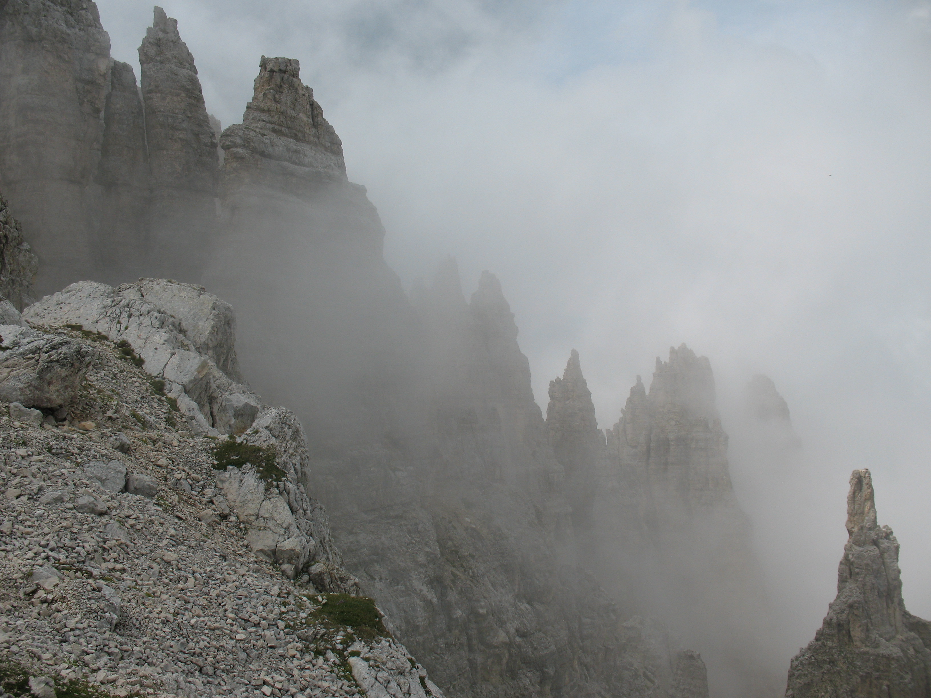Before reaching the top of the Torre Nord you can have an unusual and impressing view on the most celebrated (and crowded) 'Vajolet Towers'
