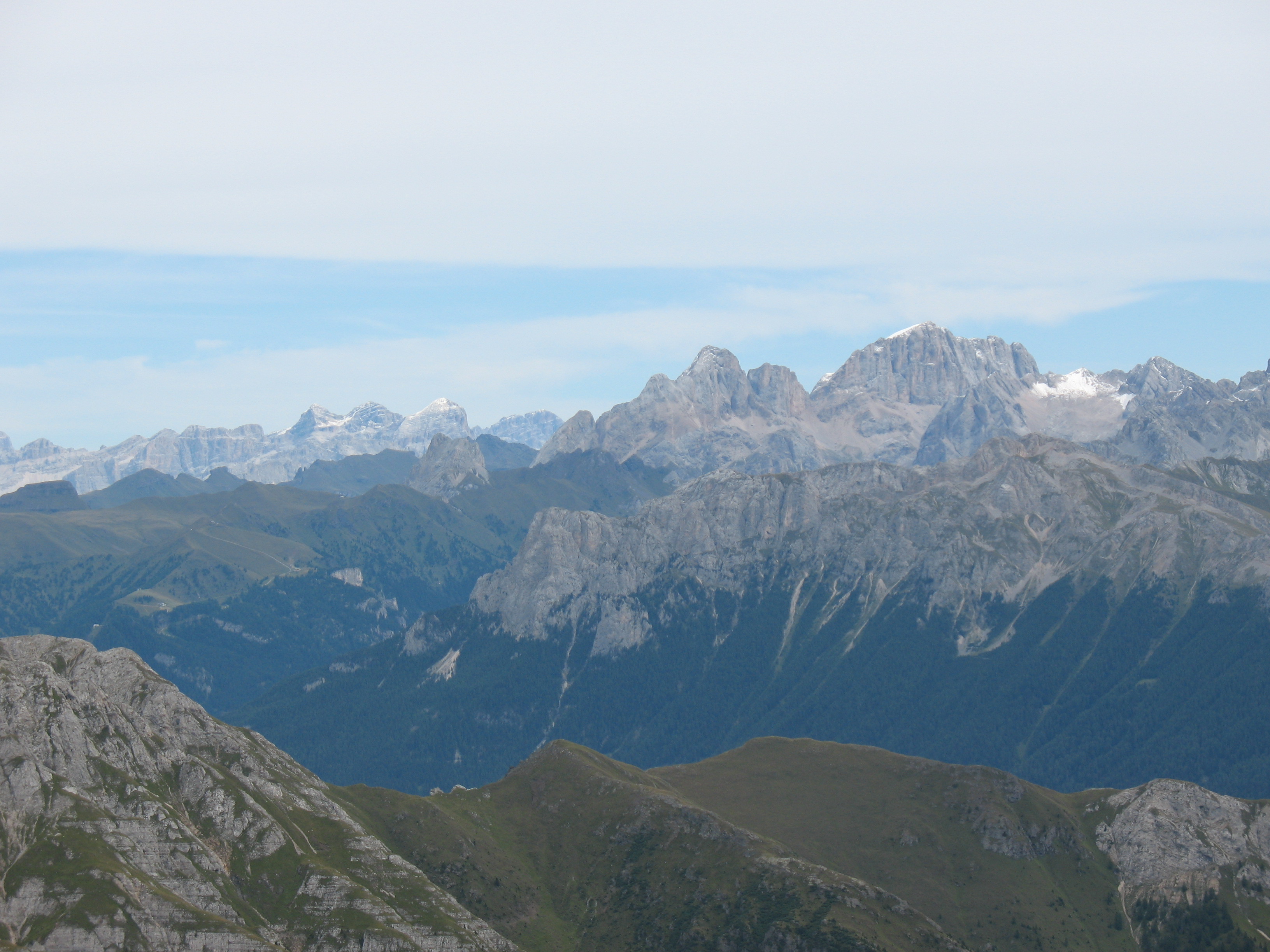 (Langkofel) from the almost plane region (Altopiano delle Mesules) on the top of Gruppo Sella (reached in a nontrivial way...).